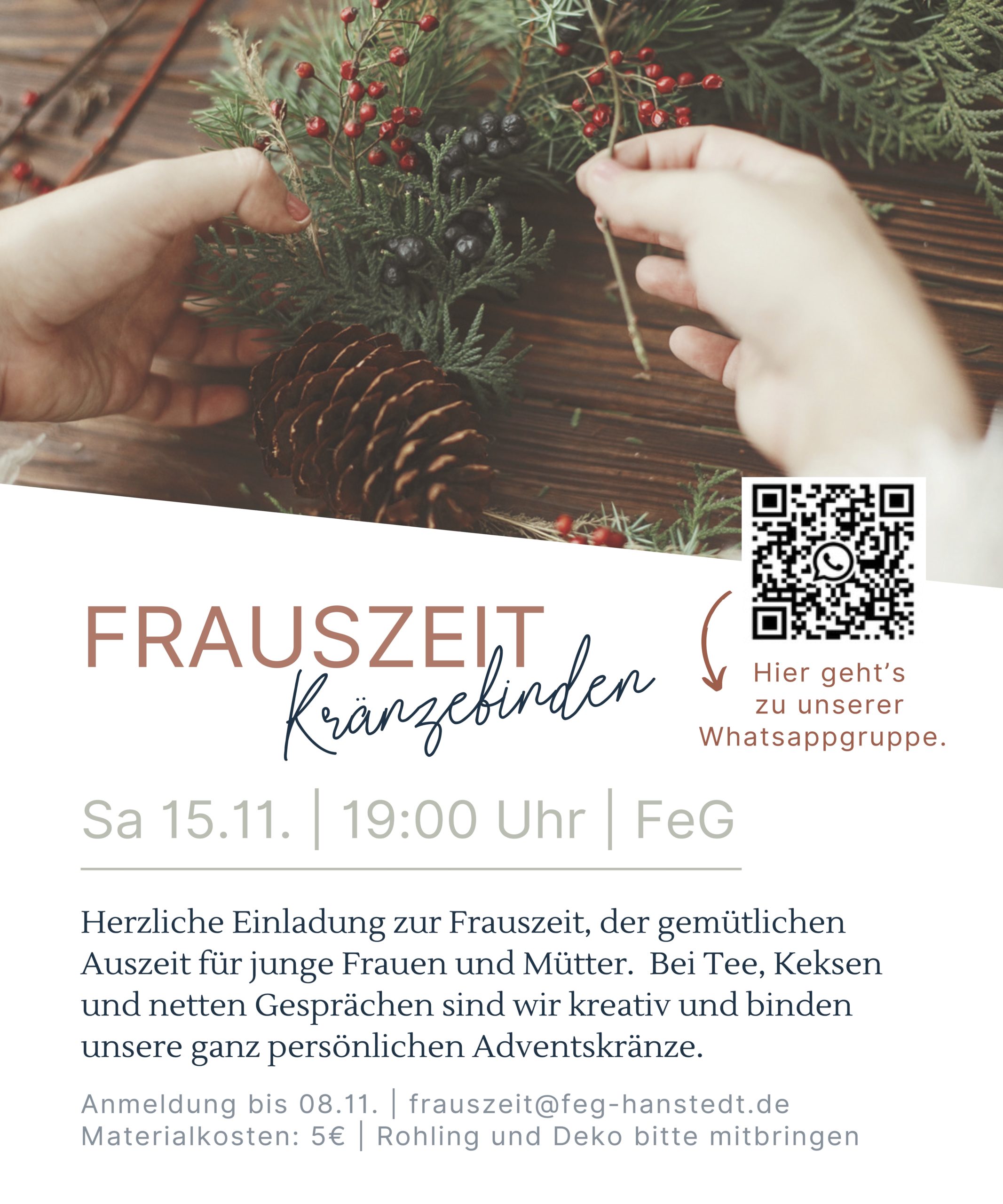 Wir sind eine lebendige und herzliche Freie evangelische Gemeinde in Hanstedt – Menschen aus verschiedenen Lebensphasen, die miteinander unterwegs sind und den Glauben im Alltag entdecken möchten.